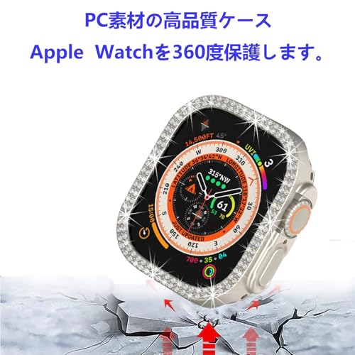 CIOODDW for アップルウォッチ カバー 40mm 41mm 42mm 44mm 45mm 46mm 49mm キラキラ 超簿軽量 耐衝撃 100%灵敏度 96颗 金属 ダブルダイヤモンド 飾りフレーム apple watch カバー Series ultra 3/2/1 /11/10/9/8/7/SE3/SE2/SE/6/5/4(49mm,スターライト,液晶フィルムなし)