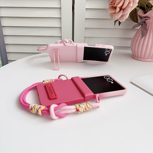 Galaxy Z Flip7専用 編みひも付きケース 超薄型軽量デザイン スタンド機能 ヒンジ保護カバー 360度防護 磨砂肌触り加工 指紋防止 ワイヤレス充電対応 レンズ保護 手帳型 人気 個性 ユニーク フリップ マットの表面 防汚 衝撃吸収 二層構造滑り防止 スマホ おしゃれ - Beautycatcher - ローズ-グラデーション