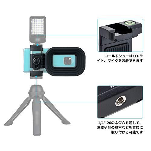 クリップがレベラー、コールドシュー、1/4"-20ネジ付きのデザインで、LEDや、マイクロを接続でき、三脚に装着しても問題ありません。