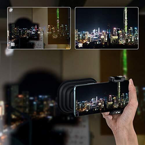 スマホ用 シリコンフード 夜景撮影 窓ガラスの映り込みを防止 取り外し可能なスマホホルダー付き iPhone/Samsung/HUAWEI/MI 用 マイク と LEDフィルライト取り付け可能