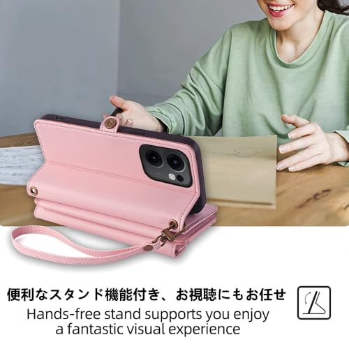 Oppo Reno13 A ケース 手帳型 通用 Reno13A ショルダーケース オッポ Reno 13A オッポリノ13A SIMフリー ワイモバイル 楽天モバイル 携帯カバー Reno 13 A oppo 手帳 リノ13A カバー 適用 case Cobeimisr ショルダー バッグ ストラップ 斜め掛け カード スマホケース ピンク