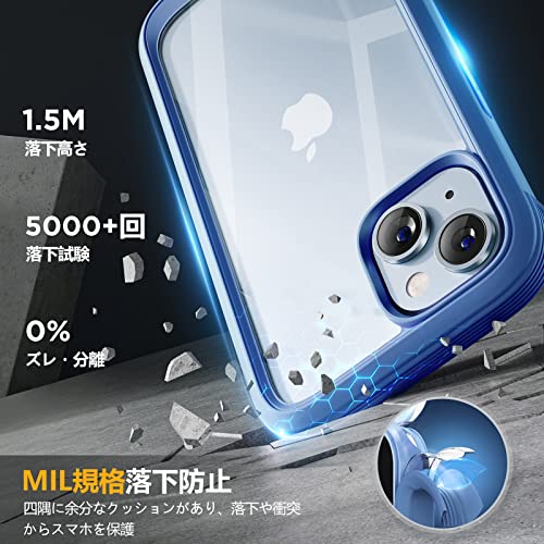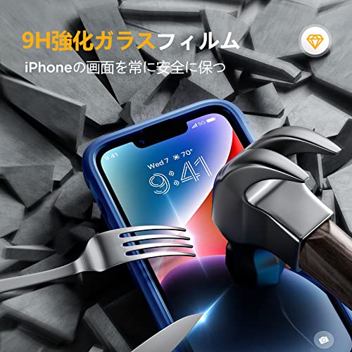Miracase iPhone14ケース スマホケース iphone14 用 全身バンパー保護ケース 9H 強化ガラス 6.1インチ フルカバー 360° ワイヤレス充電対応 ブルー