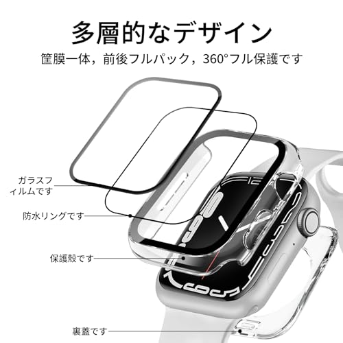 BELIYO 対応 アップルウォッチ カバー Series 9/8/7 Apple Watch ケース 防水 ガラスフィルム 一体型 アップルウォッチ ケース 全面保護 高耐久 高透過率 装着簡単 2 in 1 前後の保護 Apple Watch カバー PC素材 二重構造(45mm,クリア)