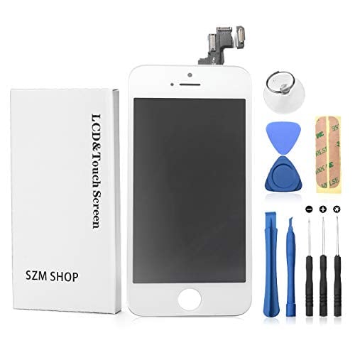SZM iphone5S 修理用フロントパネル 液晶パネル タッチパネル フロントパネル (スピーカー +フロントカメラ付き)修理パーツ 工具付属 ホームボタン付きません (5S, 白)