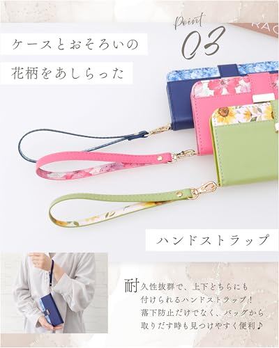 ✅【キャッシュレスに便利な機能性】カードを収納できるポケット付き。上下どちらにも付けられるハンドストラップはケースとおそろい。
