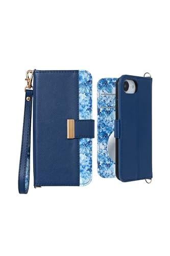 MINTY iPhone16e 用 ケース 手帳型 花柄 ストラップ付き ノーブルアジサイ