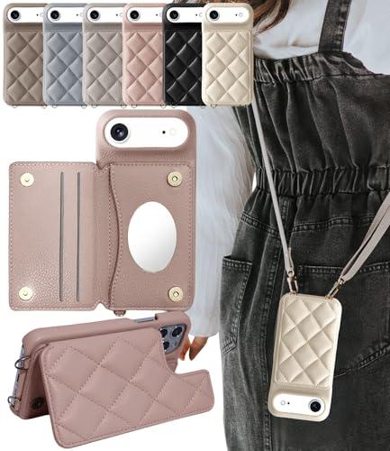 Liisea スマホケース iphone 用の 17 air ケース ショルダー カード収納 17air 手帳型 リングなし ストラップ いpほね ショルダー 鏡付き 17エア 耐衝撃 おしゃれ 可愛い 肩掛け 斜めかけ ミラー付き カード入れ かわいい オシャレ キルティング カード入れ 落下防止 大人可愛い ギフト おしゃれ 大人可愛い