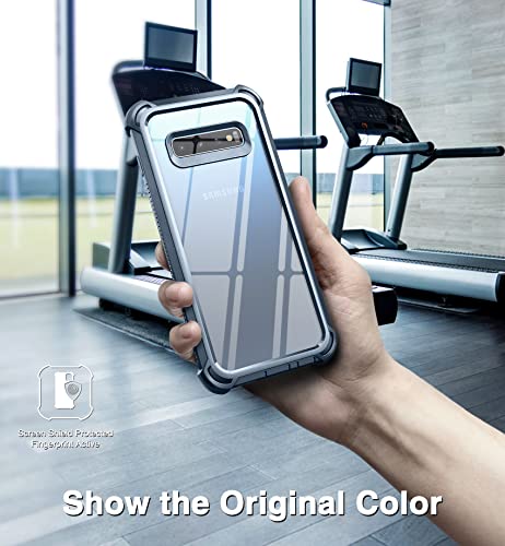 【軍用規格の耐衝撃保護】 Samsung Galaxy S10用2in1ケースは、プラスチック製内蔵スクリーンプロテクターとハードクリアバックカバーを備えています。端末の縁を包む柔軟なシリコーンが衝撃を効果的に吸収し、特に四隅を厚く強化しています。