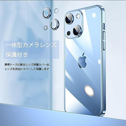 JOOBOY iPhone 15 用 クリアケース 透明 メッキ加工 レンズフィルム付き ハードかばー PC素材 かわいい おしゃれ 超軽量 薄型 指紋防止 人気 ストラップホール付き スマホケース アイフォン15 携帯かばー (ブルー, iPhone 15)