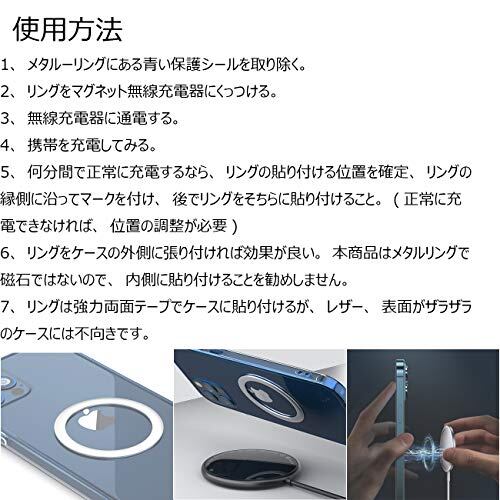 magsafe適用 メタルリング 磁気アップ 安定感 iphone8/X/XS/11/12ケースの外側に貼り付けで magsafeのようなマグネット式ワイヤレス充電器に適合 (メタルーリング2個)