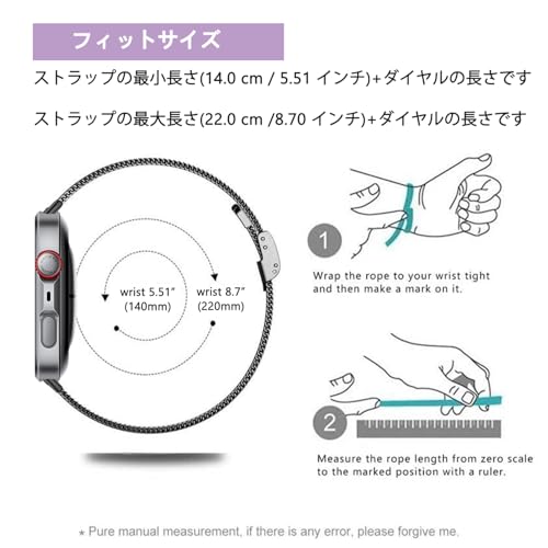優れな品質:高品質のメッシュステンレススチール作られており、精密切断技術により、時計の通常の機能に影響を与えることなく、スマートウォッチを所定の位置に取り付けて正確かつ安全にロックすることができます。ソフトで快適な着用感、耐摩耗性、傷がつきにくく、防水性があり、簡単に傷がつきません