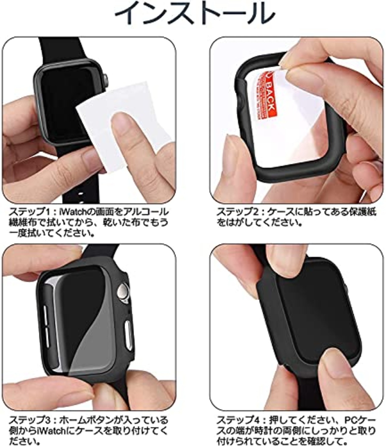 【装着簡単】:アップルウォッチ カバー 保護は簡単に着脱できます。アップルウォッチ カバー を装着する際にバンドを外す必要はありません。充電やボダン操作なども アップルウォッチカバーを装着したままでできますので大変便利ですスムーズで、実用的。ご注意:運動時に、本製品とapple watch スクリーンの間に湿気(発汗)が挟まれることがあり,タッチ感受性にも影響しますので、シャワーやフィットネスの運動の前にお外しようにしてください。