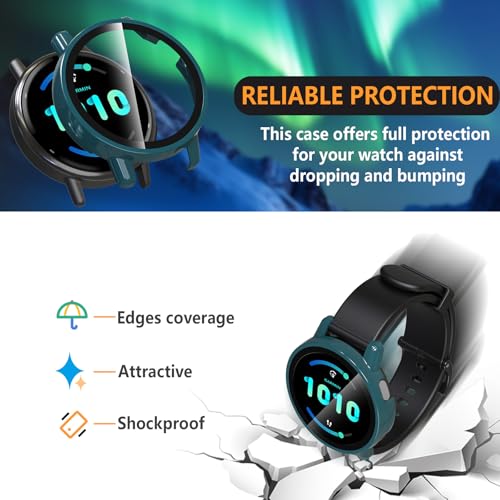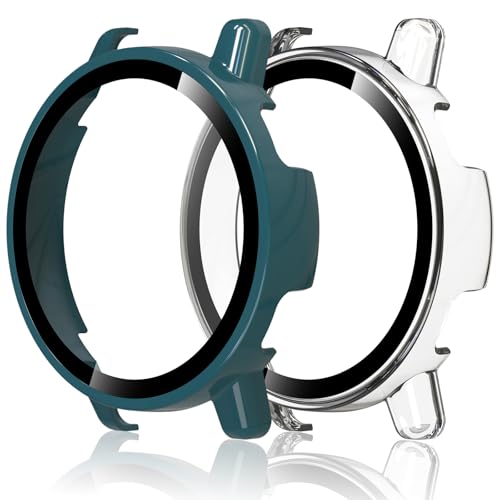 Hianjoo 2枚入り Garmin Vivoactive 5 対応 ケース 保護カバー+フィルム 一体型 Garmin Vivoactive 5 対応 カバー 保護フィルム PC素材のフレーム 全面保護 衝撃吸収 高感度タッチ [クリア+グリーン]