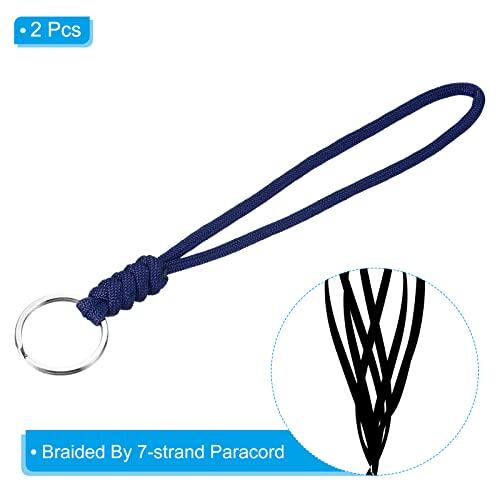 [PATIKIL] 20cm ストラップ パラコード キーリング付 ネックストラップ ランヤード 紐 携帯 スマホ IDカード ハンド 落下防止 2本 ネイビー