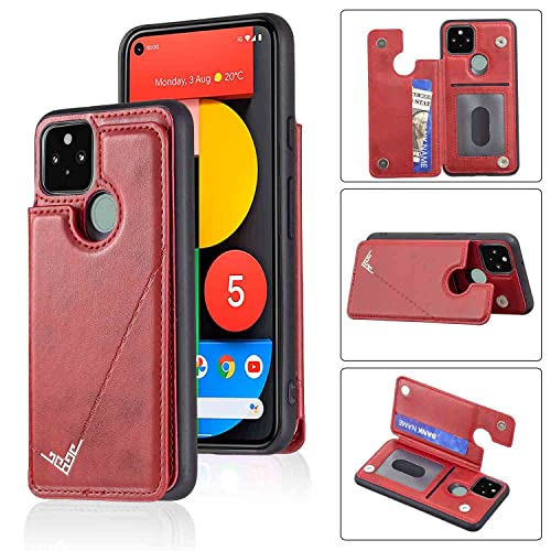 【Anrek】新型 GOOGLE Pixel 5 au 用 背面 カードケース 手帳型 ランヤード付 背面カバー (レッド) グーグル ピクセル5 pixel5 スマホケース サイドマグネット カード収納 横置き機能 PUレザー 財布型 携帯カバー pixel5 RED