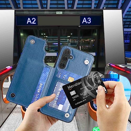 【Anrek】新型 SAMSUNG Galaxy A54 5G / docomo SC-53D / au SCG21 用 背面 カードケース 手帳型 ランヤード付 背面カバー (ネイビーブルー) サムスン ギャラクシーa54 5g ドコモsc53d au scg21 スマホケース サイドマグネット カード収納 横置き機能 PUレザー 財布型 携帯カバーgalaxy a54 BLUE