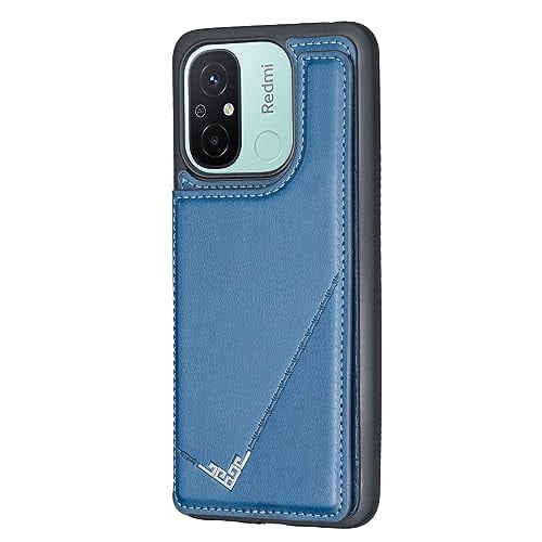 【Anrek】新型 XIAOMI Redmi 12C mineo 用 背面 カードケース 手帳型 ランヤード付 背面カバー (ネイビーブルー) シャオミ ミー12c mi12c スマホケース サイドマグネット カード収納 横置き機能 PUレザー 財布型 携帯カバー シャオミmi12c BLUE