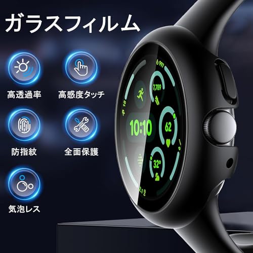 Google Pixel Watch 3 45mm 用 ケース ガラスフィルム 一体型 Google Pixel Watch 3保護カバー 全面保護 耐衝撃 高透過率 指紋防止 グーグルピクセルウォッチ カバー(黒)