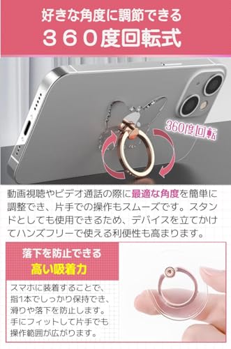 【透明のデザイン】透明なリングはどんなデバイスにも馴染むため、機種やケースのデザインに関係なく使用できます。デバイスの見た目をそのまま楽しめ、スタイリッシュさを保ちながら機能性も向上します。