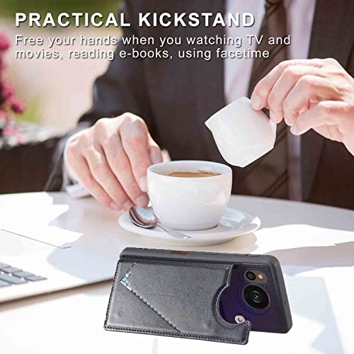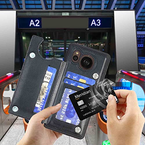 【Anrek】新型 SHARP AQUOS sense7 plus Softbank 用 背面 カードケース 手帳型 ランヤード付 背面カバー ( ブラック )シャープ アクオス センス7プロ ソフトバンクsense7plus スマホケース サイドマグネット カード収納 横置き機能 PUレザー 財布型 携帯カバーsense7plus BLACK