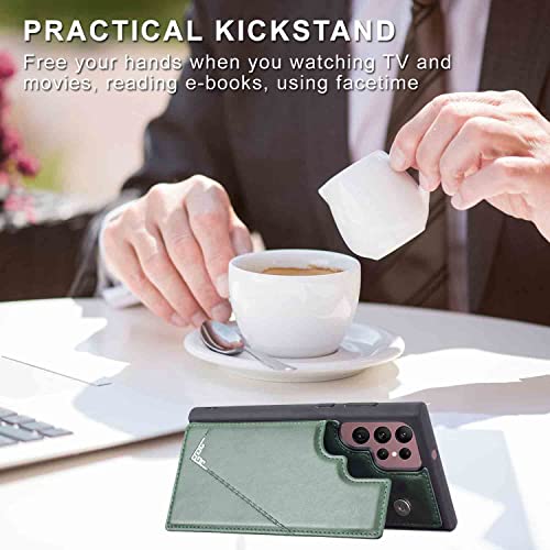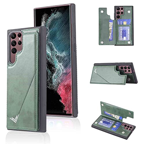 【Anrek】新型 SAMSUNG Galaxy S22 Ultra 5G 用 背面 カードケース 手帳型 ランヤード付 背面カバー (ダルグリーン) サムスンs22ウルトラ ギャラクシーs22u スマホケース サイドマグネット カード収納 横置き機能 PUレザー 財布型 携帯カバーgalaxy s22u GREEN