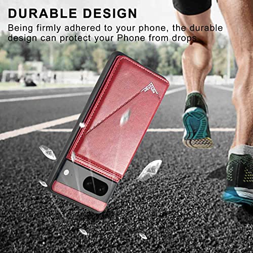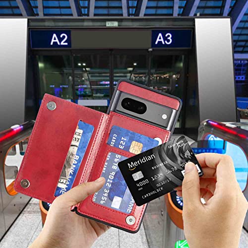 【Anrek】新型 Google Pixel 7 au Softbank 用 背面 カードケース 手帳型 ランヤード付 背面カバー (レッド) グーグル ピクセル7ソフトバンクpixel7 スマホケース サイドマグネット カード収納 横置き機能 PUレザー 財布型 携帯カバーpixel7 RED