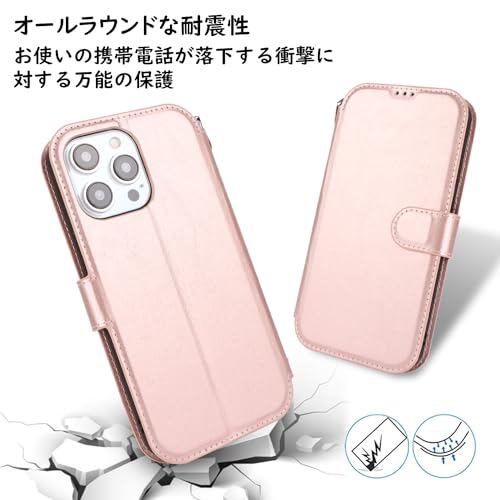 Havaya スマホショルダー iPhone 15 Pro ケース いphone15Pro ケース iPhone15Pro ケース 手帳型 ショルダー 米軍MIL規格 軽薄 耐衝撃 カード収納 カバー レンズ保護 (6.1インチ対応)-ローズゴールド