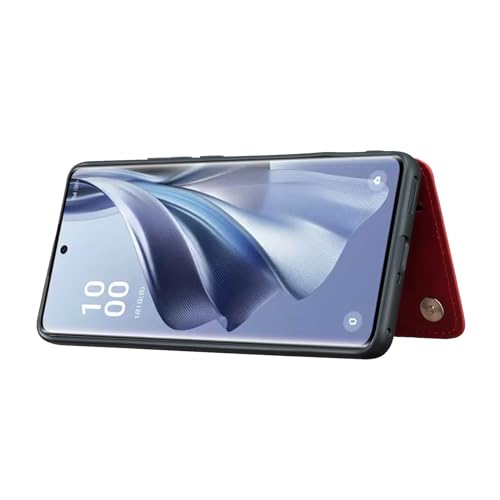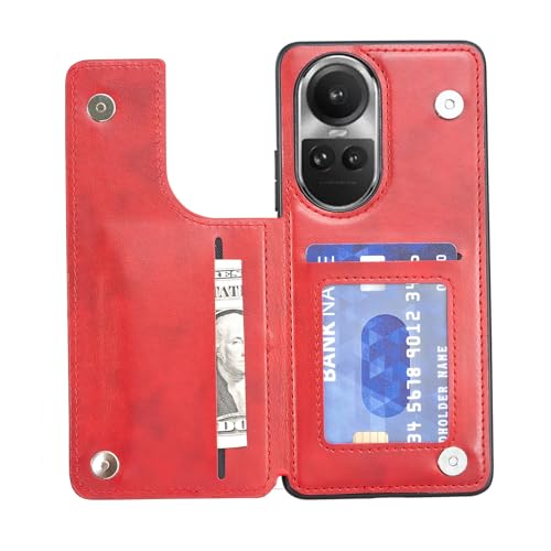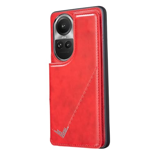 【Viesa】背面カバー ケース手帳型 Reno 10 Pro 5G 対応 OPPO ランヤード付 背面型ケース (レッド) 美しい、軽·薄 持ちやすい、滑り止め、すり傷防止マグネット 横置きスタンド機能 財布型 スマホバックカバー オッポ リノ10プロ リノ10Pro reno10pro RED