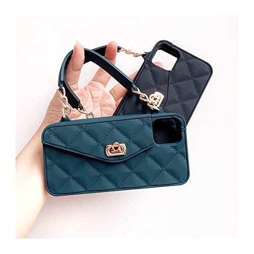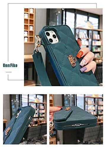 UnnFiko 財布型ケース iPhone 11対応 かわいい軽量高級バッグデザイン 財布フリップカードポーチカバー ソフトシリコンケース ハンドストラップ ロングショルダーストラップ付き(ダークグリーン、iPhone 11)