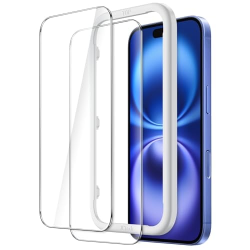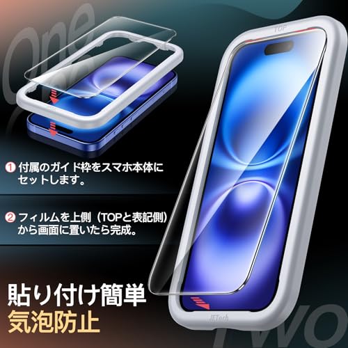 JETech iPhone 16 Plus 6.7インチ用 液晶保護フィルム 強化ガラス製 ガイド枠付き ケースに干渉なし HDクリア 2枚セット