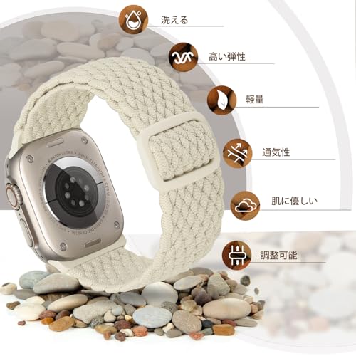 Acortjl 編組ソロループ Apple Watch ウォッチストラップ 49mm 45mm 44mm 42mm 41mm 40mm 38mm に対応、調節可能なストラップ 伸縮性のあるスポーツ交換用リストバンド レディース メンズ iWatch Ultra/Ultra2 シリーズ 9 8 7 6 5 4 3 2 1 SE、3 パック