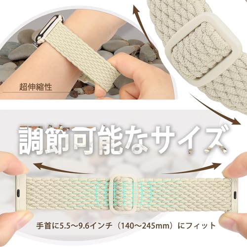 【調整可能】 - この編組弾性ストラップは手首のサイズに合わせて簡単に調整できます。 バックルによりバンドの長さを140mmから245mmまで調節可能です。 ほとんどの人にフィットするフリーサイズで、従来の編み込みバンドのように手首を測ってサイズを選択する必要はありません。
