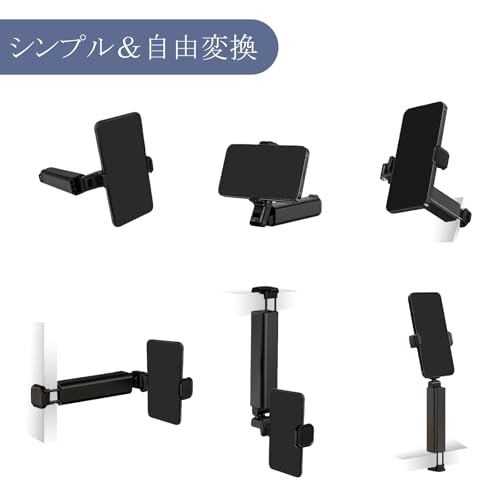 【多用途&幅広い対応機種】 クランプ厚さは最大3cmまで対応。飛行機シート、机、キャビネット扉、キャリーケースハンドルなど様々な場所に設置可能。ホルダー幅は最大9.6cmで、iPhoneシリーズ、Galaxy、Pixel、Xperiaなどほぼ全機種に対応します。