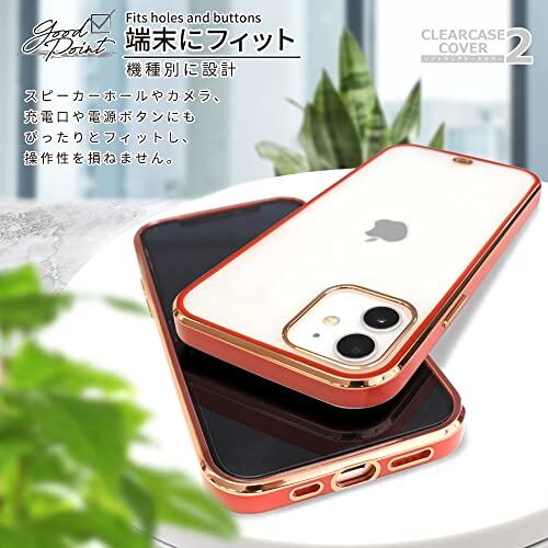 シズカウィル iPhone12 / iPhone12 Pro ケース カバー サイドメッキ加工 メッキ2 クリアケース Red(赤色)