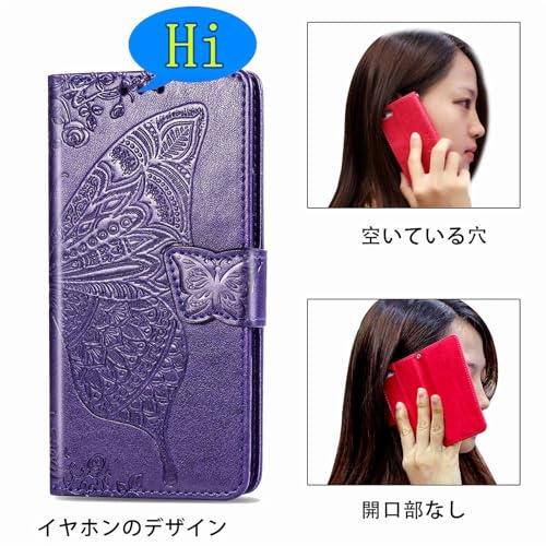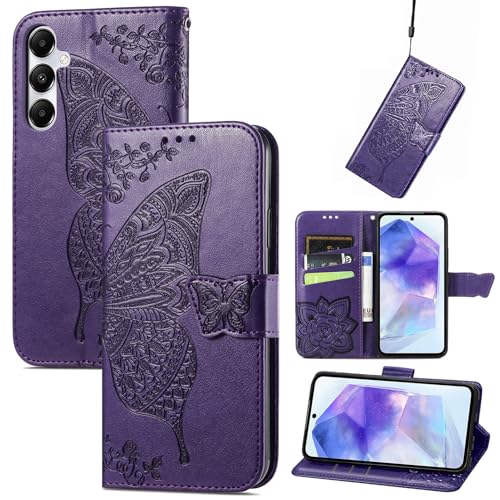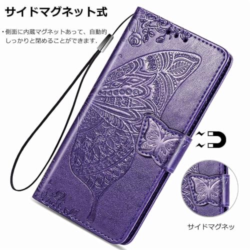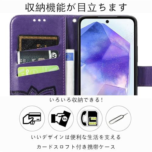 Galaxy A55 5G 用携帯カバー カード収納ス 蝶の図案をカバーするクリップ付き財布型【ZIHEWJLAI 】Samsung ギャラクシー A55 / SC-53E / SCG27 ケース 手帳型 内蔵マグネット galaxy a55手帳型 カバー ケース 耐衝撃 全面保護 スマホケース 手帳 カードポケット付き スタンド機能 手綱 紫