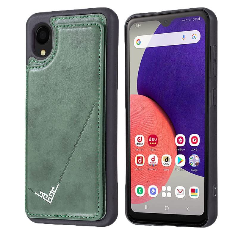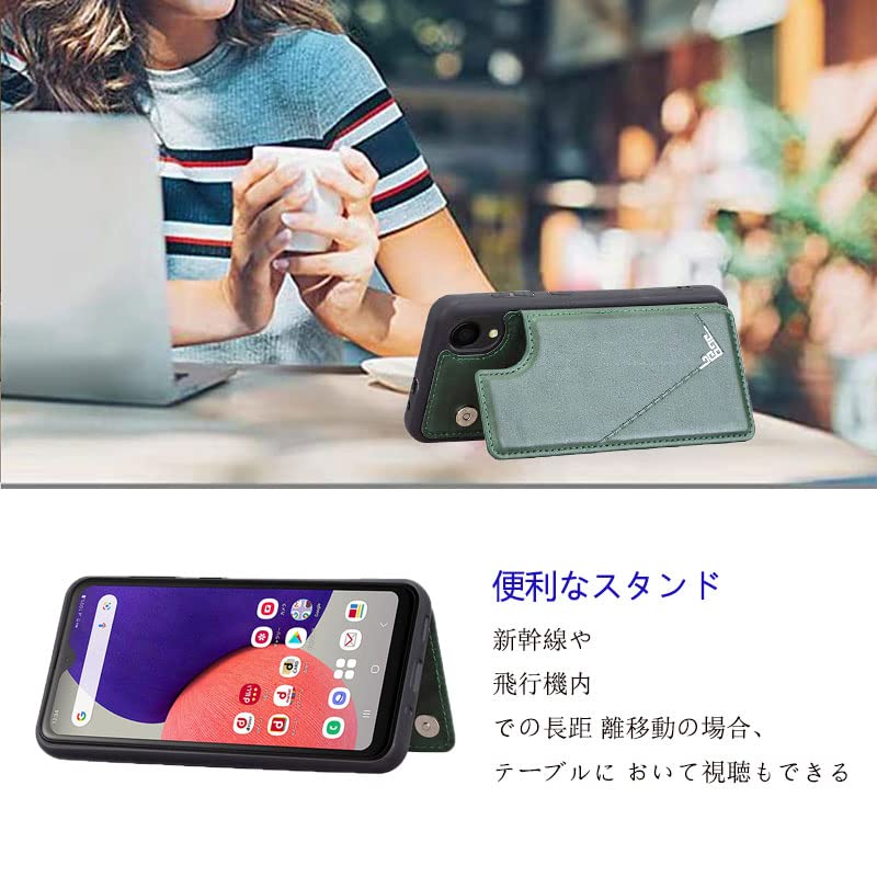 【Suumii】 手帳型 Galaxy A22 5G docomo SC-56B用 背面 手帳 カードケース ランヤード付 背面カバー (ダルグリーン)サムスン galaxyA225g SC56B5g A225G スマホケース サイドマグネット カード収納 横置き機能 PUレザー 財布型 携帯カバー ギャラクシー エートゥエンティーツー ファイブジー Galaxy A22 5G緑