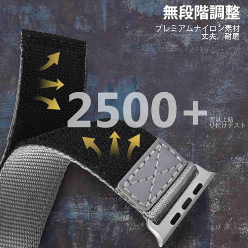 [MABEKS] ナイロン時計バンド コンパチブル42mm 44mm 45mm 49mmアップルウォッチ グレー·シルバーアダプター腕時計バンド 無段階調整可能
