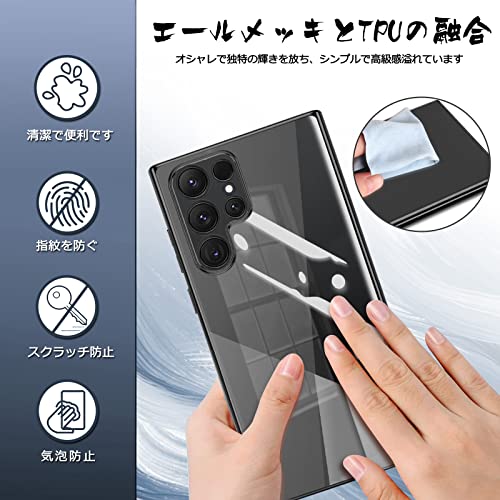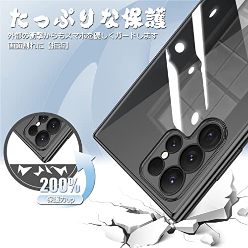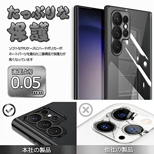 Samsung Galaxy S23 Ultra ケース クリア SC-52D SCG20 カバー 透明 TPU シリコン メッキ加工 耐衝撃 薄型 軽量 ソフトカバー ストラップホール ギャラクシー S23 Ultra スマホケース (ブラック)