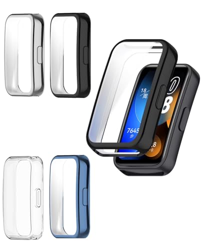 【STAY GOLD】Huawei Band 10/9/8保護ケース 4個セット ファーウェイバンド10/9/8対応 保護カバー ソフトTPU素材 全面保護カバー 耐衝撃性 傷防止 水濡れ防止 指紋防止 高速反応 取扱簡単 (ブラック/シルバー/ネイビー/透明)