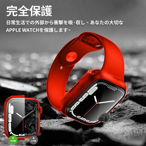 ANYOI 対応 Apple Watch ケース Series 9/8/7 41mm 保護 Apple Watch カバー PC素材 ガラスフィルム 一体型 アップルウォッチ カバー 耐衝撃 アップルウォッチ ケース 全面保護 装着簡単 高耐久 高透過率 レッド