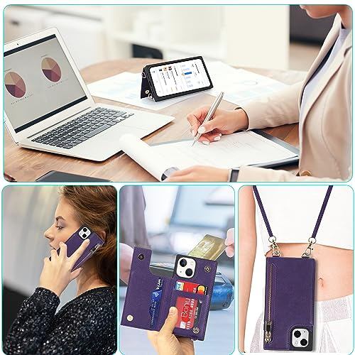 NODALA iPhone 13 mini ケース 手帳型 背面収納 ショルダー あいふぉん13 みに カバー アイフォ13ミニ ケース 財布型 いphone 13 mini スマホケース 肩掛け 斜めがけ 首かけ ストラップ付き 長さ調整可能 携帯ケース おしゃれ カード収納 左右開 耐衝撃 ステント機能 パープル