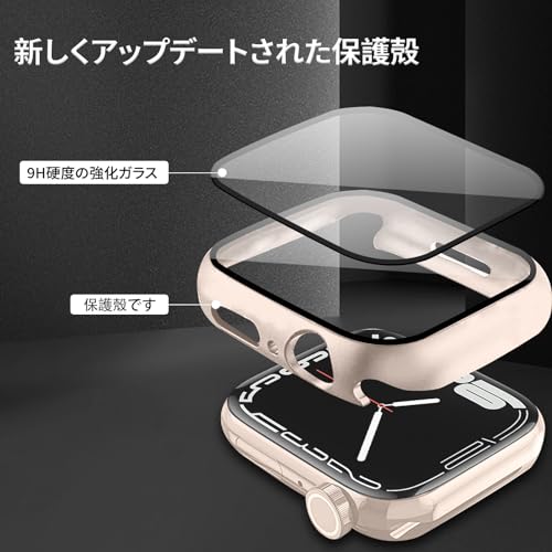 ANYOI 対応 アップルウォッチ カバー Series 9/8/7 Apple Watch ケース PC素材 ガラスフィルム 一体型 Apple Watch カバー 耐衝撃 アップルウォッチ ケース 全面保護 装着簡単 高耐久 高透過率 41mm スターライト