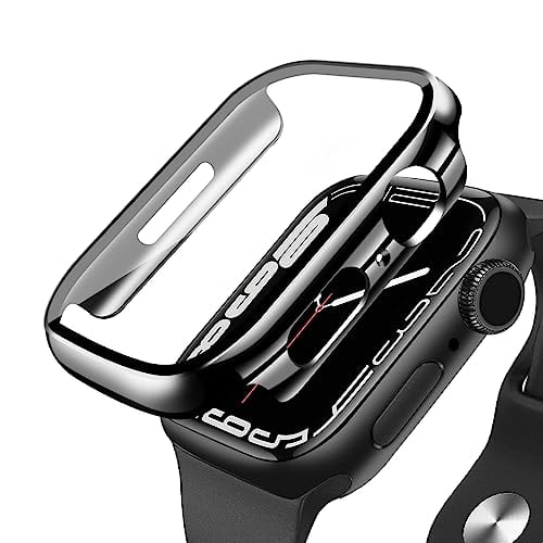 ANYOI 対応 Apple Watch ケース 41mm 保護 ケース アップルウォッチ カバー ガラスフィルム 一体型 メッキ加工 アップルウォッチ ケース 耐衝撃 装着簡単 apple watch カバー 全面保護 高透過率 Apple Watch Series 9/8/7 41mm アップルウォッチ9/8/7 41mm 対応 光沢のブラック