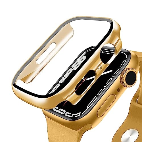 ANYOI 対応 Apple Watch ケース Series SE3/SE2/SE/6/5/4 44mm 保護 アップルウォッチ カバー ガラスフィルム 一体型 メッキ加工 アップルウォッチ ケース 耐衝撃 Apple Watch カバー 全面保護 装着簡単 高耐久 高透過率 PC素材 光沢のゴールド