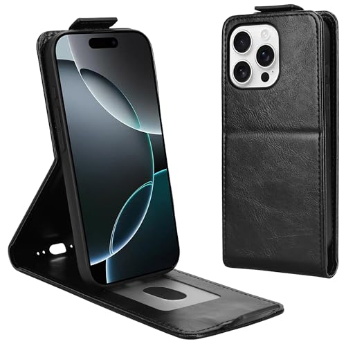 【KIVON】 iPhone 17 / 17 Pro / 17 Pro Max / 17 Air 対応/ iPhone16シリーズ / iPhone15/ Google Pixel8a/PIxel9a対応 手帳型 縦開き スタンド機能付き PUレザー 男女兼用 (ブラック, iPhone16対応)