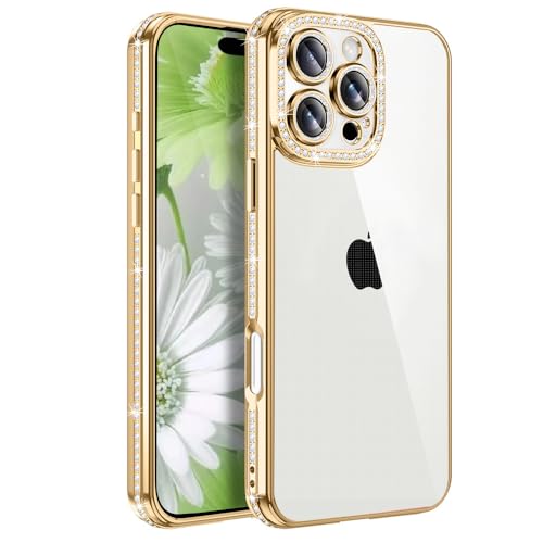 MuZiF iPhone 16 Pro 用 ケース クリア メッキ加工 キラキラ 背面全透明 サラウンドレンズ保護 カメラ保護 TPU ソフトケース 薄くて軽い 女性 人気 耐衝撃 携帯カバー ラップホール付き アイフォン 16 Pro 用 スマホケース (iPhone 16 Pro用,きんいろ)