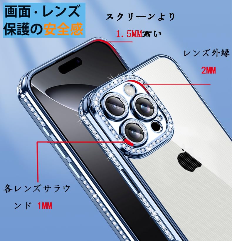 【ラグジュアリーなキラキラカバー】サイドのバンパーにはラインストーンが並び、正面から見ても、裏面から見ても高級感のあるデザイン。キラキラしている可愛いドリルが施されているので、スマホをファッションアイテムに変身させます。品の良いきらきらする感なのでどなたでもお使いいただけます。