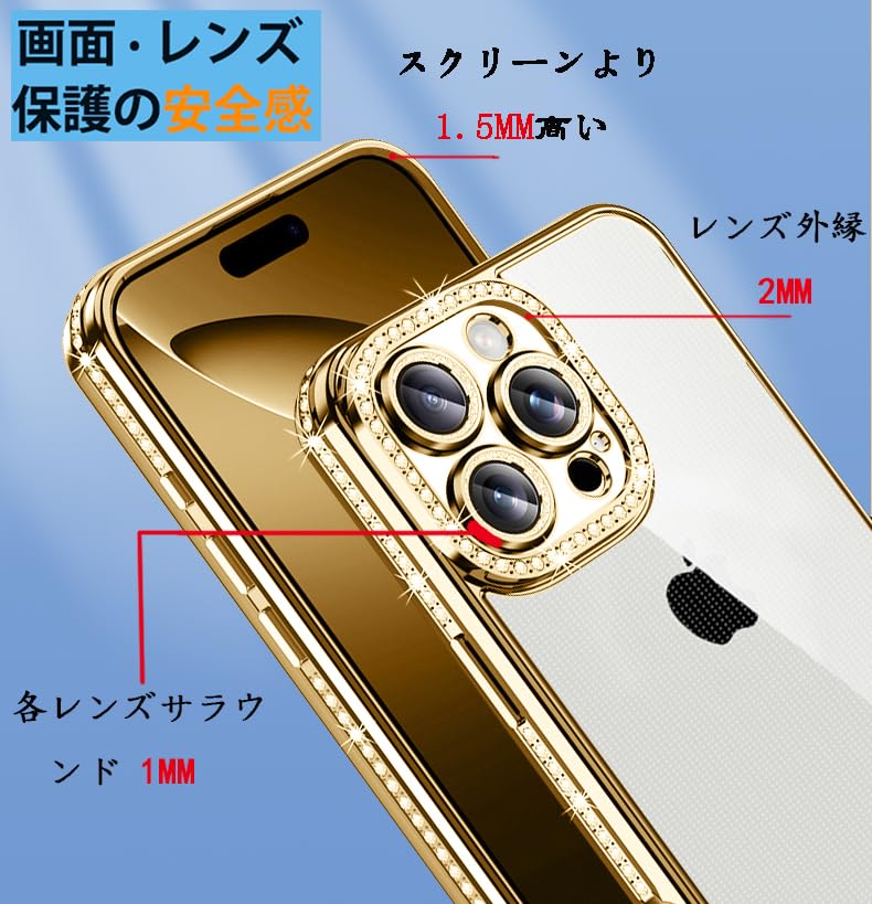 MuZiF iPhone 13 用 ケース クリア メッキ加工 キラキラ 背面全透明 サラウンドレンズ保護 カメラ保護 TPU ソフトケース 薄くて軽い 女性 人気 耐衝撃 携帯カバー ラップホール付き アイフォン 13 用 スマホケース (iPhone 13,きんいろ)