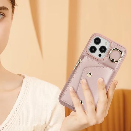 for iPhone 14 Pro Max ケース アイホン 14ProMax 背面フリップ 手帳型 360°回転 携帯カバー Case SunYoo ICカード コインポケット ストラップ付き カード 収納 小銭入れ ファスナーポケット付き ピンク