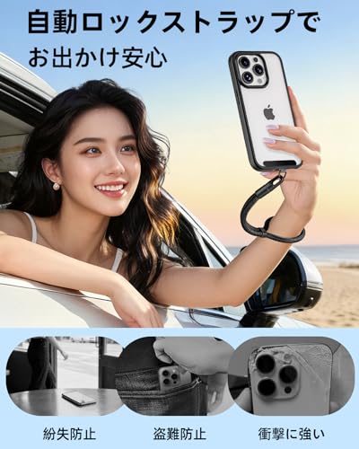 【自動ロック&調節可能で安心フィット】手首にぴったりフィットする自動ロック設計で、スマホの落下・紛失・盗難を防止。ストラップ長さも簡単調節可能なので、ずり落ちる心配がなく、通勤・旅行・運動などあらゆるシーンで快適にお使いいただけます。